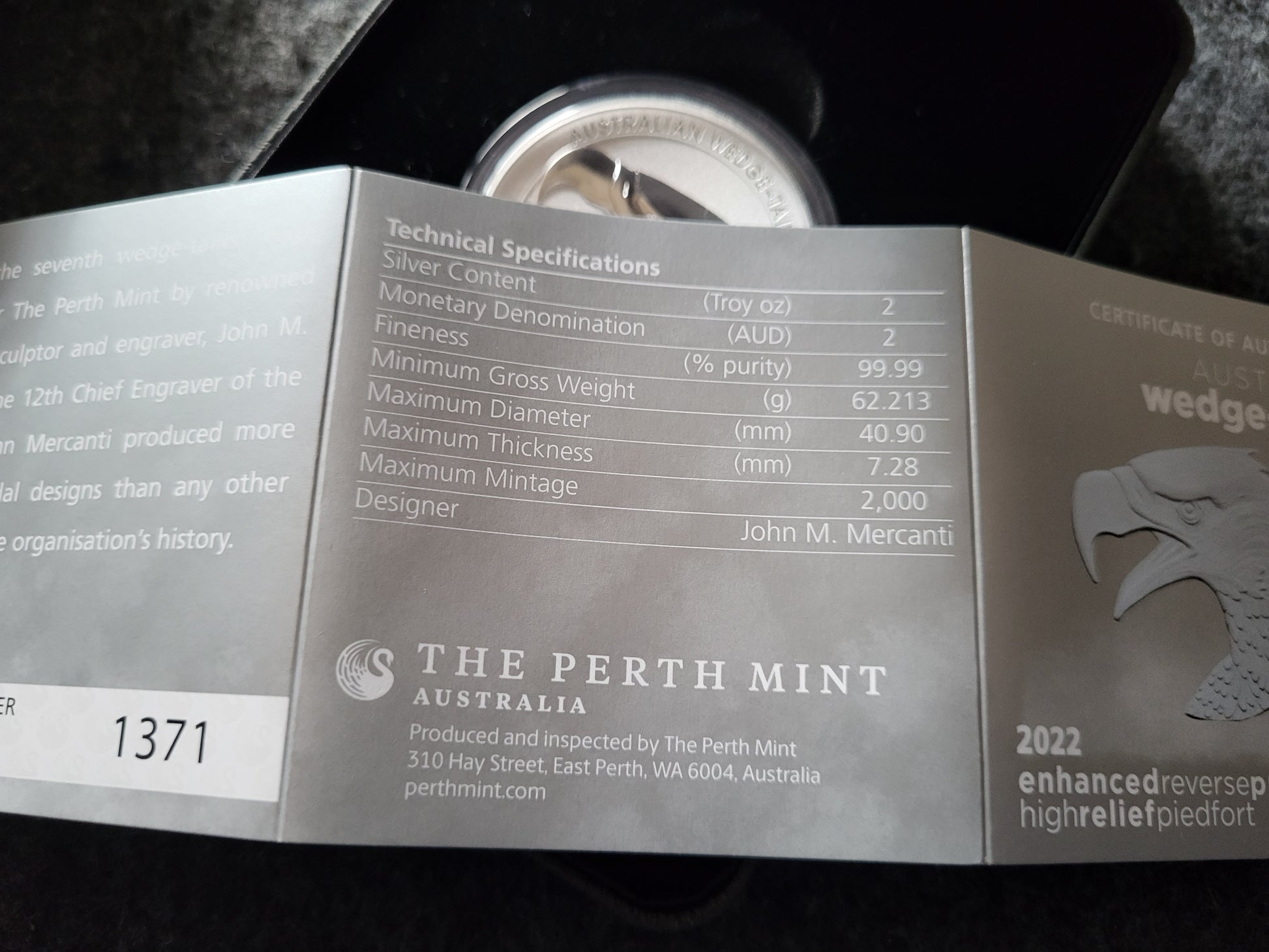 2oz Silber Wedgetailed Eagle 2022 high relief reverse proof